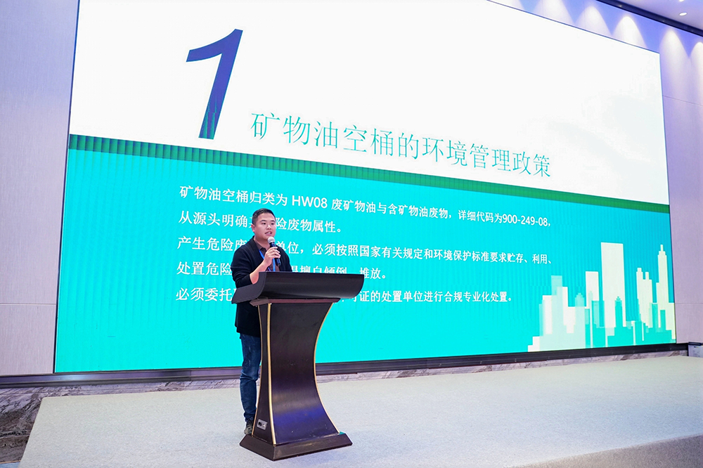 會上,尚科環保圍繞《潤滑油空桶的環境管理要求》展開專題匯報,強調潤滑油空桶作為危險廢物(HW08類,詳細代碼900-249-08),其合規處置是企業必須嚴守的環保紅線。從貯存場所標準化建設,到危險廢物轉移全流程追溯,從運輸單位到處置企業持證運營,尚科環保通過系統化管理簡介,為行業合規處置提供操作指南。同時,企業特別警示違規處置面臨的百萬級罰款與刑事責任風險,以典型案例敲響環保警鐘。