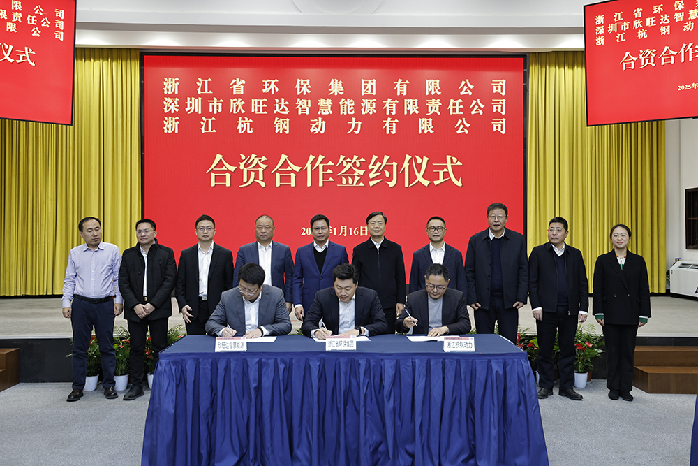 1月16日,杭鋼集團(tuán)與欣旺達(dá)電子股份有限公司達(dá)成合作,集團(tuán)公司下屬浙江省環(huán)保集團(tuán)、動力公司與欣旺達(dá)智慧能源舉行合資合作簽約儀式,三方共同出資設(shè)立浙江省環(huán)保集團(tuán)欣碳能源有限公司。杭鋼集團(tuán)黨委書記、董事長章建成,欣旺達(dá)董事長王威出席儀式并講話。杭鋼集團(tuán)黨委委員、副總經(jīng)理孫宏,總經(jīng)理助理、浙江省環(huán)保集團(tuán)董事長吳黎明;欣旺達(dá)副總裁葉智林、李章溢等領(lǐng)導(dǎo)出席儀式并見證簽約。浙江省環(huán)保集團(tuán)、動力公司與欣旺達(dá)智慧能源主要負(fù)責(zé)人分別代表公司簽約。