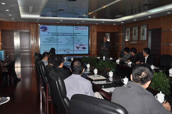 10月12日,應(yīng)農(nóng)業(yè)部海洋漁業(yè)可持續(xù)發(fā)展重點實驗室的邀請,緬因大學(xué)終身教授、上海海洋大學(xué)國際海洋研究中心首席科學(xué)家陳勇與上海海洋大學(xué)人事處處長楊昕、農(nóng)業(yè)部大洋漁業(yè)資源環(huán)境科學(xué)觀測實驗站(依托單位上海海洋大學(xué))站長戴曉杰等一行8人訪問黃海水產(chǎn)研究所。黃海所所長金顯仕、副所長趙憲勇及相關(guān)人員接待了陳勇一行,并與來賓開展了學(xué)術(shù)交流與合作研討。