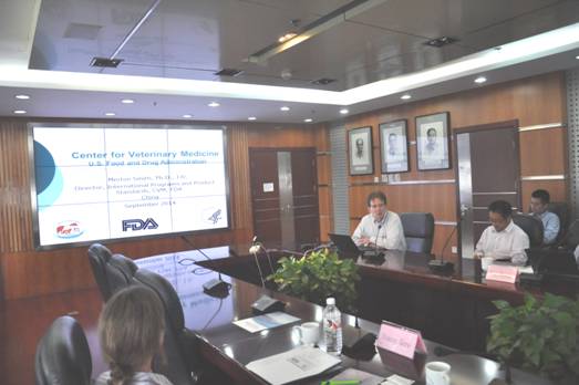 會(huì)上,李健副所長對(duì)Merton Smith主任一行的到訪表示熱烈歡迎,并簡(jiǎn)要介紹了中國水產(chǎn)養(yǎng)殖業(yè)的發(fā)展現(xiàn)狀和前景以及黃海所的歷史、機(jī)構(gòu)設(shè)置、主要研究方向和科研成果等。Merton Smith主任介紹了美國FDA獸藥獸醫(yī)中心的組織機(jī)構(gòu)和人員組成、主要職能和管理范圍以及國際合作與交流活動(dòng)等。Stacey Gore博士專門針對(duì)水產(chǎn)用藥物的審批問題,從審批流程、相關(guān)規(guī)定和指導(dǎo)原則、藥物有效性評(píng)價(jià)的方法、指標(biāo)和影響因素以及疾病模型等多個(gè)方面進(jìn)行了詳細(xì)介紹。雙方與會(huì)人員還就感興趣的問題開展了廣泛的交流與討論。