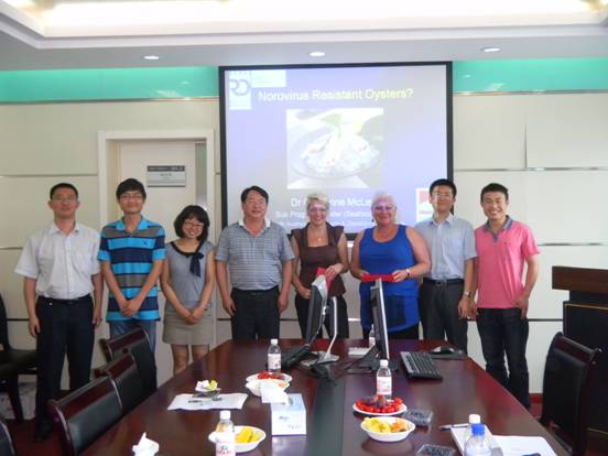 訪問(wèn)期間,Catherine博士為黃海所有關(guān)科研人員做了題為“Norovirus Resistant Oysters”的學(xué)術(shù)報(bào)告,并就合作項(xiàng)目的研究進(jìn)展和下一步工作計(jì)劃與黃海所有關(guān)專(zhuān)家進(jìn)行了座談。