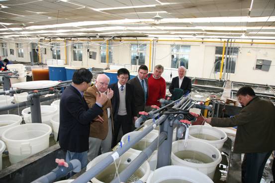 會后,Galway市代表團在金顯仕副所長的陪同下參觀了黃海所即墨水產(chǎn)遺傳育種中心,聽取了孔杰研究員對遺傳育種中心所開展的工作、實驗設(shè)施及中國對蝦遺傳育種情況介紹,雙方還就各自感興趣的問題進(jìn)行了廣泛交流。