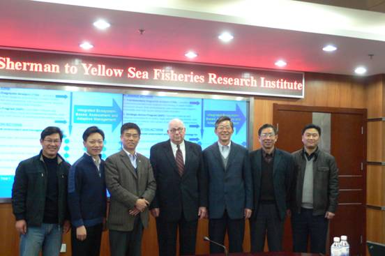 3月18日下午,應(yīng)唐啟升院士邀請(qǐng),“大海洋生態(tài)系之父” Sherman 博士到黃海所做了題為“Sustaining the World's Large Marine Ecosystems During ClimateWarming”的學(xué)術(shù)報(bào)告。國(guó)家海洋局第一海洋研究所、中國(guó)海洋大學(xué)、黃海所唐啟升院士及有關(guān)專家和研究生30余人參加了此次學(xué)術(shù)報(bào)告會(huì)。