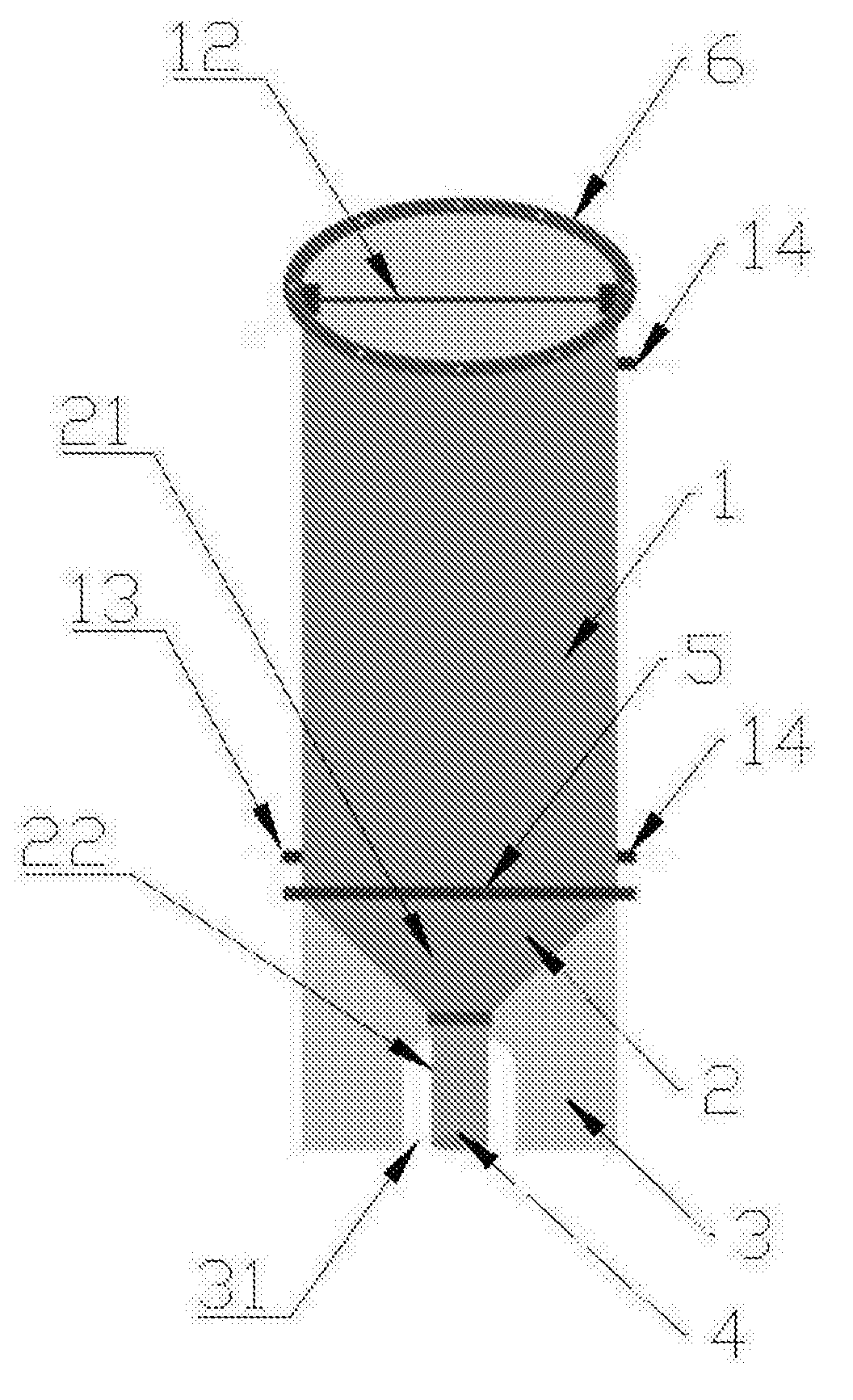 本發(fā)明涉及海洋生物生理實(shí)驗(yàn)技術(shù)領(lǐng)域,具體涉及一種基于群落水平的海洋貝類生物生理實(shí)驗(yàn)裝置及其使用方法。實(shí)驗(yàn)裝置包括透明上桶體、漏斗、支撐桶體和收集瓶,透明上桶體的頂部設(shè)置密封蓋,內(nèi)部設(shè)有用于懸吊實(shí)驗(yàn)生物群落的內(nèi)掛桿,一側(cè)桶壁設(shè)有進(jìn)水口、外接水泵和控水閥,另一側(cè)桶壁設(shè)有出水口;支撐桶體的中部開設(shè)有柱形口,柱形口內(nèi)放置收集瓶,漏斗的下端管伸入所述收集瓶。