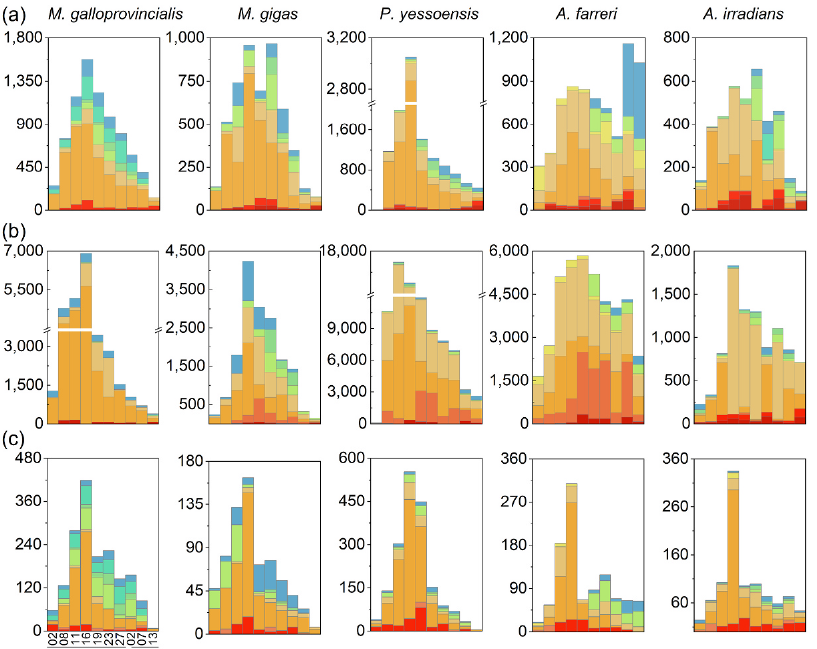 自2016年秦皇島貽貝中毒事件暴發(fā)以來,中國水產(chǎn)科學(xué)研究院黃海水產(chǎn)研究所水產(chǎn)品質(zhì)量安全形成機(jī)制與防控技術(shù)創(chuàng)新團(tuán)隊綜合運(yùn)用多學(xué)科方法及多組學(xué)技術(shù),系統(tǒng)研究了秦皇島海域麻痹性貝類毒素風(fēng)險發(fā)生的環(huán)境驅(qū)動、形成過程、調(diào)控機(jī)制,并對我國傳統(tǒng)模式下消費(fèi)風(fēng)險進(jìn)行了評估,初步摸清了該海域麻痹性貝類毒素風(fēng)險發(fā)生的全鏈條及關(guān)鍵風(fēng)險控制點,為科學(xué)構(gòu)建區(qū)域性麻痹性貝類毒素風(fēng)險主動防控技術(shù)提供了研究基礎(chǔ)。相關(guān)成果發(fā)表在Environmental Pollution, Environmental Research, Toxins和Journal of Oceanology and Limnology等期刊上。