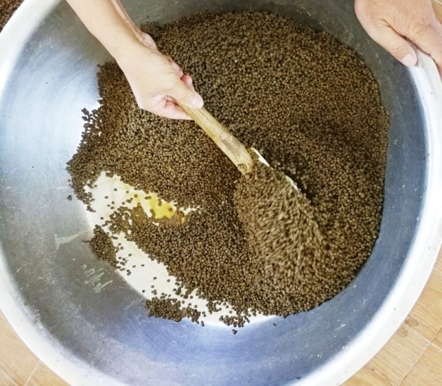 本發(fā)明屬于水產(chǎn)養(yǎng)殖技術(shù)領(lǐng)域。在半滑舌鰨養(yǎng)殖過程中,腸炎是常見的病害,一旦得病,則很難治療,極易造成養(yǎng)殖損失,而前期預(yù)防是避免腸炎發(fā)生最有效的措施。本發(fā)明通過將一定比例的葡萄糖粉劑和乳酸菌加到清水中,攪拌均勻,然后緩慢加入飼料中,并不停攪拌,直至水被完全吸收,然后將飼料風(fēng)干后投喂;針對(duì)半滑舌鰨攝食特性和循環(huán)水水交換量大等特點(diǎn),對(duì)進(jìn)水管進(jìn)行了改進(jìn),并通過調(diào)整進(jìn)水方向等方法,有效減少了飼料的浪費(fèi),進(jìn)而有效的預(yù)防了腸炎的發(fā)生,提高了養(yǎng)殖成活率。