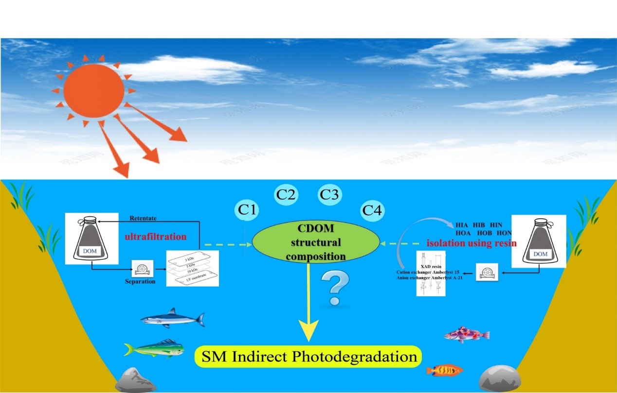 中國(guó)水產(chǎn)科學(xué)研究院黃海水產(chǎn)研究所漁業(yè)環(huán)境優(yōu)化與循環(huán)水處理技術(shù)創(chuàng)新團(tuán)隊(duì)針對(duì)這一科學(xué)問題展開深入研究,揭示了溶解有機(jī)物結(jié)構(gòu)組成在磺胺類抗生素間接光降解過程中的關(guān)鍵作用,闡明了海水中關(guān)鍵環(huán)境因子對(duì)間接光降解的影響機(jī)理,相關(guān)研究成果發(fā)表在環(huán)境科學(xué)與生態(tài)學(xué)領(lǐng)域TOP期刊Science of The Total Environment和Environmental Pollution上。