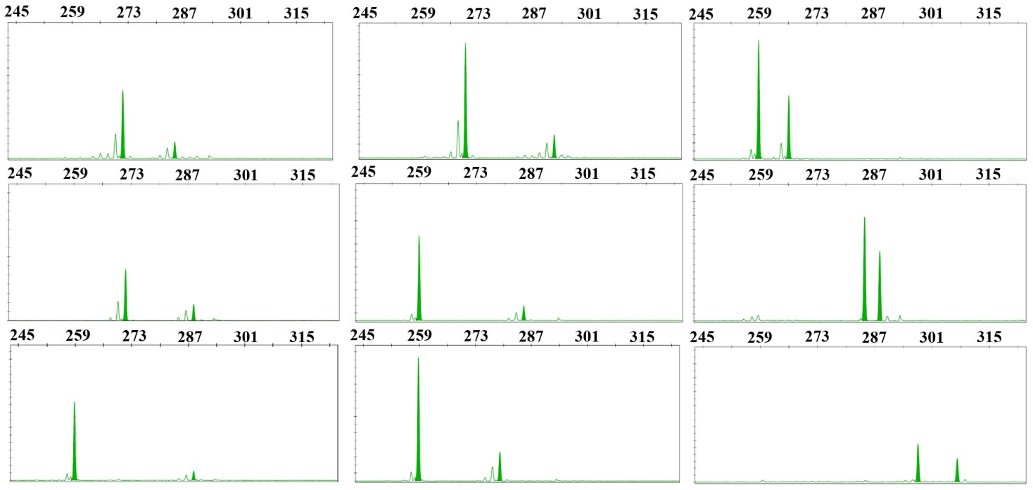 本發(fā)明公開了一種凡納濱對蝦微衛(wèi)星標(biāo)記的引物組合及應(yīng)用,屬于分子生物學(xué)技術(shù)領(lǐng)域。在凡納濱對蝦遺傳選育過程中,及時評估已有群體的遺傳資源現(xiàn)狀,認(rèn)清不同群體甚至個體間的分子遺傳背景差異,制定合理配種方案,是優(yōu)化國內(nèi)凡納濱對蝦種質(zhì)的有效途徑。本發(fā)明提供了一種凡納濱對蝦微衛(wèi)星標(biāo)記的引物組合及應(yīng)用,微衛(wèi)星分子標(biāo)記的名稱分別為:Lv01、Lv03、Lv09、Lv12、Lv18、Lv55、Lv99、Lv106、Lv119、Lv1291、Lv1292、Lv3201、Lv3202和Lv1969,所有微衛(wèi)星分子標(biāo)記穩(wěn)定擴(kuò)增且具有多態(tài)性,可用于凡納濱對蝦種質(zhì)資源遺傳多樣性和遺傳結(jié)構(gòu)分析及家系鑒定,為凡納濱對蝦的遺傳改良提供了新的工具。