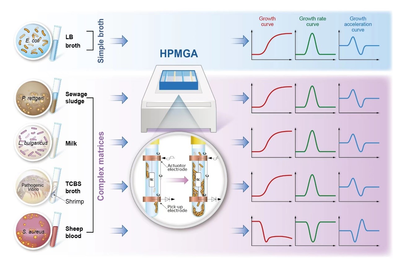 本工作攻克了困擾分析科研界近半個世紀的難題,研制的HPMGA是微生物生長分析技術(shù)的革命性突破,在國際上首次為高效且精確測定復雜基質(zhì)中微生物生長曲線提供了可靠工具。更重要的是,它是世界上第一款能夠自動報告生長速率、生長加速度曲線及曲線上的動力學參數(shù)的自主知識產(chǎn)權(quán)分析儀器,為產(chǎn)生具有顛覆性意義的科學發(fā)現(xiàn)奠定了儀器和方法基礎(chǔ)。本研究獲得了山東省重點研發(fā)計劃項目(2020CXGC010703)和山東省自然科學基金重點項目(ZR2020KB021)的支持。