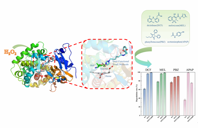 研究團(tuán)隊(duì)通過(guò)計(jì)算機(jī)模擬、基因工程和化學(xué)修飾相結(jié)合的方式,成功設(shè)計(jì)開(kāi)發(fā)出一系列基于血紅素蛋白(細(xì)胞色素P450BM3和肌紅蛋白)的新型人工生物酶,實(shí)現(xiàn)了對(duì)雙氯芬酸、美洛昔康、保泰松、對(duì)乙酰氨基酚四種經(jīng)典非甾體抗炎藥的綠色高效生物降解,降解效率10分鐘內(nèi)便可達(dá)到90.51%-100%。與現(xiàn)有的微生物和酶降解系統(tǒng)(如Labrys portucalensis F11菌株、假單胞菌Pseudomonas sp. PrS10、漆酶等)相比,該新型生物酶系統(tǒng)的催化活性顯著提升,降解時(shí)間大幅縮短。研究成果為環(huán)境中非甾體抗炎藥的綠色高效降解提供了新的思路,具有廣泛的應(yīng)用前景。