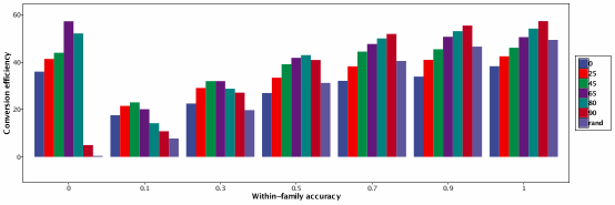 圖3 不同選擇準確性下基因組配種策略對轉換效率的影響