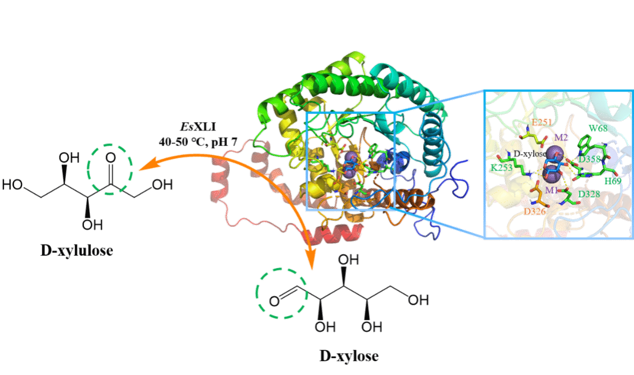 木糖異構(gòu)酶(Xylose isomerase)是生物質(zhì)轉(zhuǎn)化、稀有糖合成及高果糖漿生產(chǎn)中的關(guān)鍵酶,在食品、醫(yī)藥和生物能源等領(lǐng)域具有廣泛應(yīng)用。然而,目前大多數(shù)商業(yè)化木糖異構(gòu)酶來源于嗜熱微生物,其催化反應(yīng)通常需在70–95 ℃條件下進行,不僅能耗高,還易產(chǎn)生美拉德反應(yīng)副產(chǎn)物,影響產(chǎn)品色澤與風味。因此,開發(fā)兼具高催化性能與低溫適應(yīng)性的木糖異構(gòu)酶具有重要意義。
