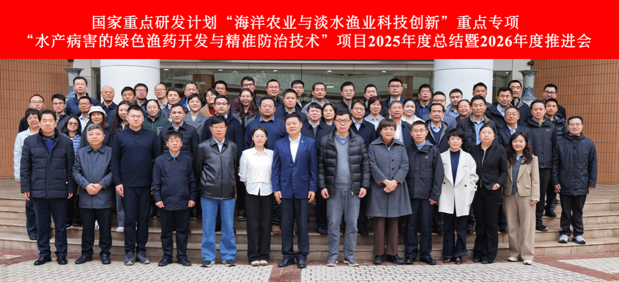 2月28日至3月1日,由中國(guó)水產(chǎn)科學(xué)研究院黃海水產(chǎn)研究所牽頭的國(guó)家重點(diǎn)研發(fā)計(jì)劃“海洋農(nóng)業(yè)與淡水漁業(yè)科技創(chuàng)新”重點(diǎn)專(zhuān)項(xiàng)“水產(chǎn)病害的綠色漁藥開(kāi)發(fā)與精準(zhǔn)防治技術(shù)”項(xiàng)目2025年度總結(jié)暨2026年度推進(jìn)會(huì)在上海召開(kāi),農(nóng)業(yè)農(nóng)村部科技發(fā)展中心項(xiàng)目專(zhuān)員豐程程、中國(guó)水產(chǎn)科學(xué)研究院項(xiàng)目專(zhuān)員賈宜珺、中國(guó)獸醫(yī)藥品監(jiān)察所張存帥研究員、四川農(nóng)業(yè)大學(xué)汪開(kāi)毓教授、浙江省淡水水產(chǎn)研究所沈錦玉研究員、華東理工大學(xué)劉琴教授、寧波大學(xué)李成華教授、江蘇省海洋水產(chǎn)研究所萬(wàn)夕和研究員、上海海洋大學(xué)呂利群教授、中國(guó)水產(chǎn)科學(xué)研究院黃海水產(chǎn)研究所副所長(zhǎng)葉乃好研究員、華東理工大學(xué)副校長(zhǎng)趙黎明教授及項(xiàng)目組成員等60余人參會(huì)。會(huì)議由黃海所科研處處長(zhǎng)劉志鴻研究員主持。