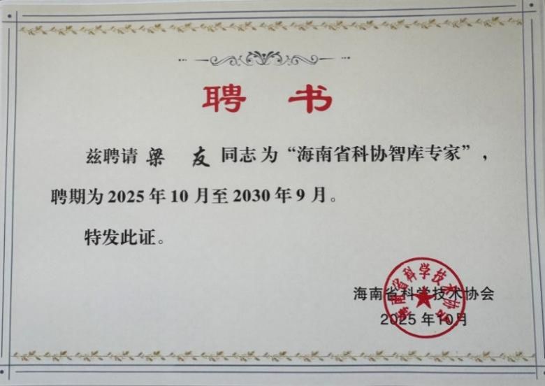 近日,中國水產(chǎn)科學(xué)研究院黃海水產(chǎn)研究所退休干部梁友副研究員獲聘首批“海南省科協(xié)智庫專家”?!昂D鲜】茀f(xié)智庫專家”是海南省科學(xué)技術(shù)協(xié)會(huì)為支持海南自貿(mào)港建設(shè)和發(fā)展,面向自然科學(xué)領(lǐng)域及科技戰(zhàn)略研究領(lǐng)域的專業(yè)人才設(shè)立的咨詢團(tuán)隊(duì)?。