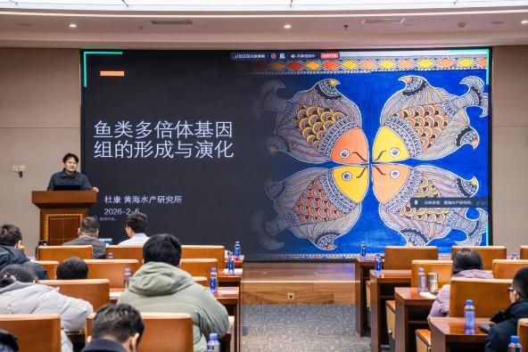 胡鵬教授作了題為“基因組學技術研發(fā)與魚類抗性遺傳機制解析”的學術報告,系統(tǒng)闡述了母源因子在胚胎低溫脅迫存活中的關鍵功能及中性粒細胞免疫狀態(tài)轉(zhuǎn)變的表觀調(diào)控機制。王堃教授作了題為“脊椎動物宏進化的遺傳基礎”的學術報告,詳細介紹了趨同演化、基因組創(chuàng)新及基因功能重塑等關鍵機制,并為“間斷平衡”演化理論提供了重要的遺傳學證據(jù)。杜康研究員作了題為“魚類多倍體基因組的形成與演化”的學術報告,指出了多倍體演化與水產(chǎn)的重要聯(lián)系,闡明了同源多倍體和異源多倍體的形成方式和后續(xù)演化軌跡的差異以及可能的原因。三場報告引起了與會科研人員和研究生的熱烈反響,大家圍繞感興趣的問題展開了深入交流與討論,現(xiàn)場學術氛圍濃厚。