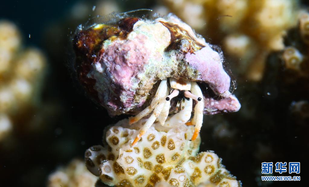 這是蜈支洲島海域海洋牧場(chǎng)中的寄居蟹(5月24日攝)。新華社記者 楊冠宇 攝