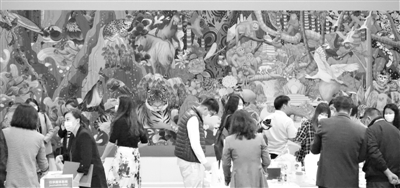 圖為10月12日在《生物多樣性公約》第十五次締約方大會(huì)新聞中心拍攝的大幅彩繪作品。 新華社記者 陳君清攝