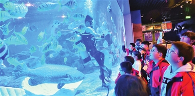 雙休日期間,一場主題為“海洋館奇妙夜·我愛大自然”主題研學活動在天津海昌極地海洋公園舉行。現(xiàn)場青少年們通過夜宿海洋館、觀看驚險刺激的海豚海獅表演、生動有趣的知識講座和科普、趣味橫生的互動項目,讓孩子們跟著課本去旅行,將課本和世界鏈接在一起,在行中學,在學中悟。