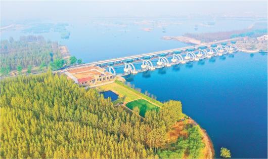 暮春時(shí)節(jié),青島市大沽河即墨段,河水碧波蕩漾,沿岸綠意盎然,構(gòu)成一幅美麗的生態(tài)畫卷。