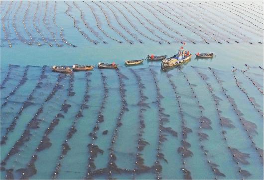 目前正值榮成市各大海洋牧場貝類、藻類養(yǎng)殖的管護(hù)期,漁民們駕駛漁船在養(yǎng)殖區(qū)來往穿梭,進(jìn)行更換浮漂、投喂餌料等作業(yè),一派海上春耕繁忙景象。