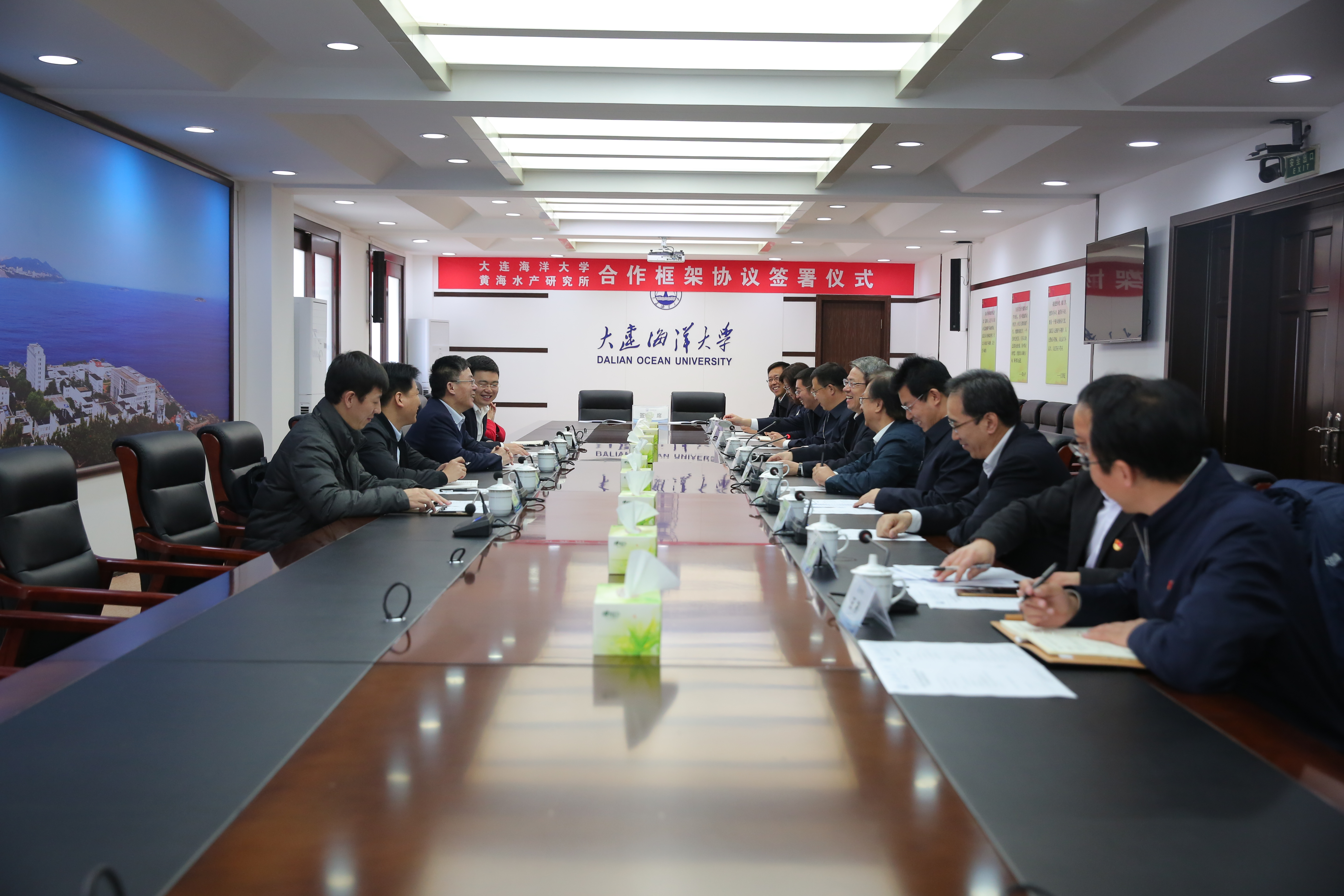 3月18日上午,黃海水產(chǎn)研究所與大連海洋大學(xué)合作框架協(xié)議簽署儀式在大連海洋大學(xué)舉行。黃海水產(chǎn)研究所所長(zhǎng)金顯仕,大連海洋大學(xué)黨委書記姚杰、校長(zhǎng)宋林生、副校長(zhǎng)張國(guó)琛、胡玉才出席簽約儀式。簽約儀式由張國(guó)琛副校長(zhǎng)主持。