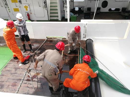 返航后船上工作人員進(jìn)行網(wǎng)具調(diào)試