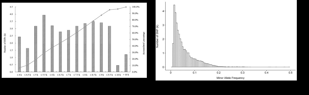 基因芯片是提升育種效率、培育抗病、抗逆及優(yōu)質(zhì)新品種的重要分子工具。近年來,針對對蝦和半滑舌鰨基因組育種缺乏低成本、高通量的基因芯片現(xiàn)狀,黃海水產(chǎn)研究所對蝦遺傳育種創(chuàng)新團隊和魚類種質(zhì)資源與分子育種創(chuàng)新團隊分別研制出凡納濱對蝦55K SNP基因芯片“黃海芯1號”和半滑舌鰨38K基因芯片“鰨芯1號”。