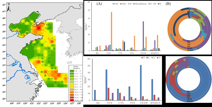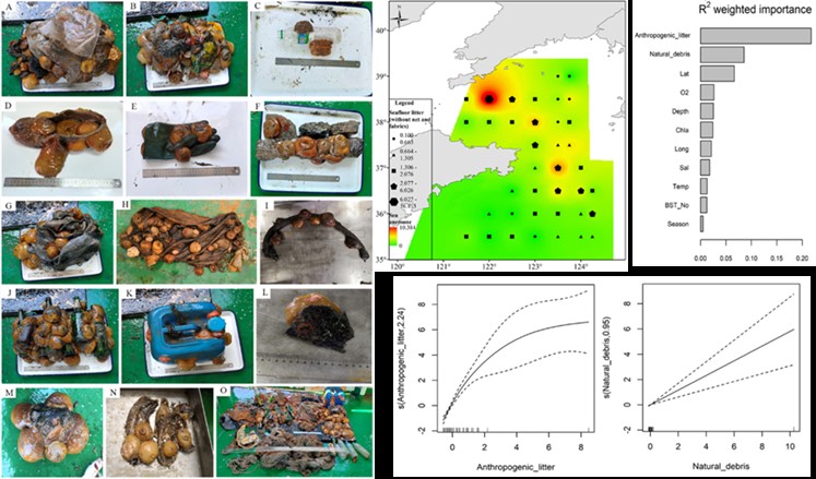 黃海水產(chǎn)研究所黃渤海漁業(yè)資源與生態(tài)創(chuàng)新團隊應用漁業(yè)資源底拖網(wǎng)對黃渤海及東海北部海底垃圾開展了調(diào)查,定量研究了不同海域海底垃圾密度、類型、來源、分布特征與規(guī)律,確定了塑料是海底垃圾的主要類型,北黃海是海底垃圾熱點區(qū)域。以須毛高齡細指???em>Metridium senile fimbriatum)為模式物種,通過現(xiàn)場觀測和統(tǒng)計模型等方法,評估了海底垃圾對于須毛高齡細指??植嫉挠绊懀U釋了海底垃圾的廣泛分布為??纳L、繁殖提供了“天然的棲息地”,并且為海葵的區(qū)域性擴散提供了“可移動的載體”,為??谋l(fā)提供了有利的條件,進而對底棲漁業(yè)生態(tài)系統(tǒng)造成影響。本研究提升了對海底垃圾與底棲生物作用機制及生態(tài)風險的科學認知,也為我國海洋垃圾綜合防治和全球海洋垃圾治理重要提供科學支撐。相關研究結(jié)果發(fā)表于Marine Pollution Bulletin和Science of Total Environment,并入選國家自然基金委資助重要研究成果。