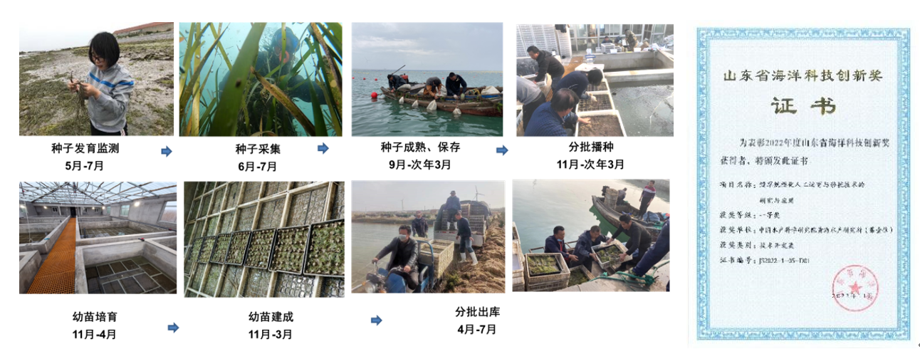 在服務(wù)國家“雙碳”戰(zhàn)略目標(biāo)的背景下,厘清漁業(yè)碳匯的形成機制、研發(fā)漁業(yè)碳匯增匯模式是亟需解決的科技和產(chǎn)業(yè)問題。黃海水產(chǎn)研究所近海生態(tài)養(yǎng)殖創(chuàng)新團隊在廓清養(yǎng)殖生物生長過程中碳使用、移出、儲存和釋放的基本過程和機制的基礎(chǔ)上,核算并分析了2001—2020年我國海水貝藻養(yǎng)殖驅(qū)動形成的使用碳、移出碳、儲存碳和釋放碳四個碳庫數(shù)量及其年際變化,基于自主研發(fā)的原位海洋酸化實驗系統(tǒng)揭示了貝藻綜合養(yǎng)殖協(xié)同應(yīng)對海水二氧化碳濃度升高的積極效應(yīng);解析了海草床生態(tài)系統(tǒng)沉積有機碳的來源及其與貝類養(yǎng)殖的協(xié)同增匯潛力,建立了陸基工廠化人工培育幼苗為移植供體的鰻草資源修復(fù)新模式,種子至幼苗的建成率達67.8%。研究結(jié)果為深入認識和科學(xué)評估漁業(yè)生產(chǎn)活動的碳匯效應(yīng)及其服務(wù)國家“雙碳”戰(zhàn)略目標(biāo)的潛力提供了理論依據(jù)和數(shù)據(jù)支撐。相關(guān)成果發(fā)表在《漁業(yè)科學(xué)進展》“碳匯漁業(yè)”???、Frontiers in Marine Science等。