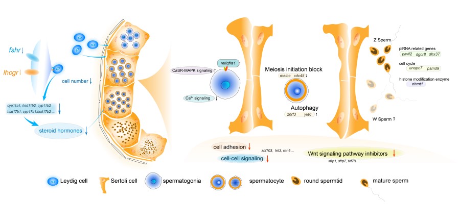 圖1.偽雄魚精子發(fā)生異常調(diào)控機制模式圖