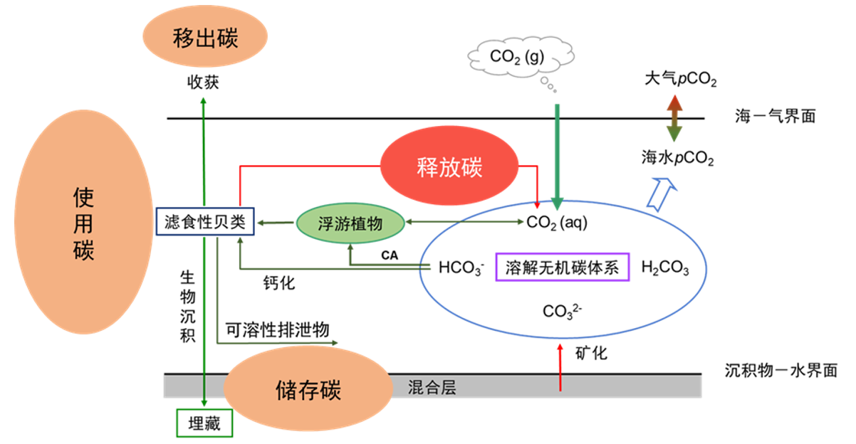 圖1.濾食性貝類養(yǎng)殖驅(qū)動形成的四個碳庫類型