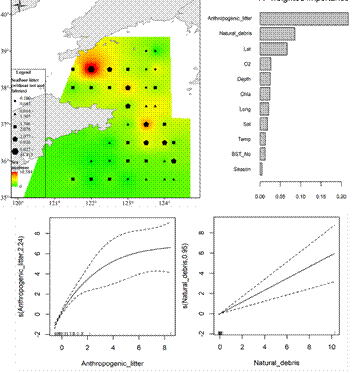 The bottom trawl survey for fisheries provides an effective observation method for studying the distribution of seafloor litter and its ecological effects. With the help of the bottom trawl survey for fisheries, the research team obtained the seafloor litter and its data and conducted site observation of the organisms attached on the marine litter. It was found that M. senile could attach to different types of seafloor litter and the hot spots of seafloor litter overlapped with the high-density areas of M. senile. In order to further evaluate the impacts of seafloor litter and environmental factors on M. senile distribution, the research team established two models: Gradient Forest Model (GFM) and Generalized Additive Mixed Model (GAMM). Based on the model analysis, there were strong positive correlations between the density of seafloor litter and the distribution of M. senile. Therefore, the wide distribution of seafloor litter in the North Yellow Sea provides a “natural habitat” for the growth and reproduction of M. senile and a “moving carrier” for the regional diffusion of M. senile, thus creating favorable conditions for the outbreak of M. senile. In view of the environmental tolerance, complex life history and ecological characteristics of M. senile, M. senile blooms could have an impact on the structure and function of the benthic ecosystem in the North Yellow Sea. This study improved the scientific understanding of the interaction mechanism between marine litter and benthic organisms and related ecological risks and provided important scientific support for the comprehensive prevention and control of marine litter in China and global marine litter pollution control.