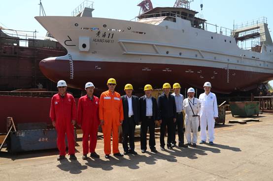 5月11日,黃海水產研究所建設的300噸級漁業資源調查船“黃海11”號在浙江造船有限公司順利下水。中國水產科學研究院副院長崔國輝,黃海所黨委書記趙憲勇、副所長辛福言以及設計和監理單位的有關人員參加了“黃海11”號的下水儀式。