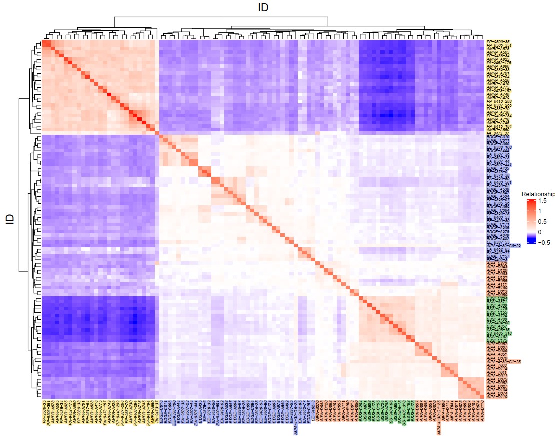 圖3 世界上主要對蝦品系的“黃海芯1號”親緣關(guān)系熱圖