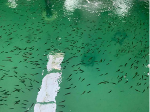 驗(yàn)收專家聽(tīng)取了課題組的工作匯報(bào),查閱了相關(guān)實(shí)驗(yàn)記錄,查看了黃條鰤育苗池塘、車間的親魚(yú)及苗種情況,并進(jìn)行了現(xiàn)場(chǎng)隨機(jī)取樣計(jì)數(shù)與測(cè)量。課題組現(xiàn)保有4-6齡黃條鰤成熟親魚(yú)368尾;建立起黃條鰤人工調(diào)控性腺發(fā)育成熟達(dá)到自然產(chǎn)卵技術(shù);采用池塘和工廠化接力育苗技術(shù)方法,共培育出平均全長(zhǎng)4.8- 6.8cm的黃條鰤苗種60.8萬(wàn)尾,實(shí)現(xiàn)了黃條鰤苗種的規(guī)?;a(chǎn)。
