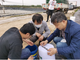 專家現(xiàn)場(chǎng)測(cè)量抽樣苗種
