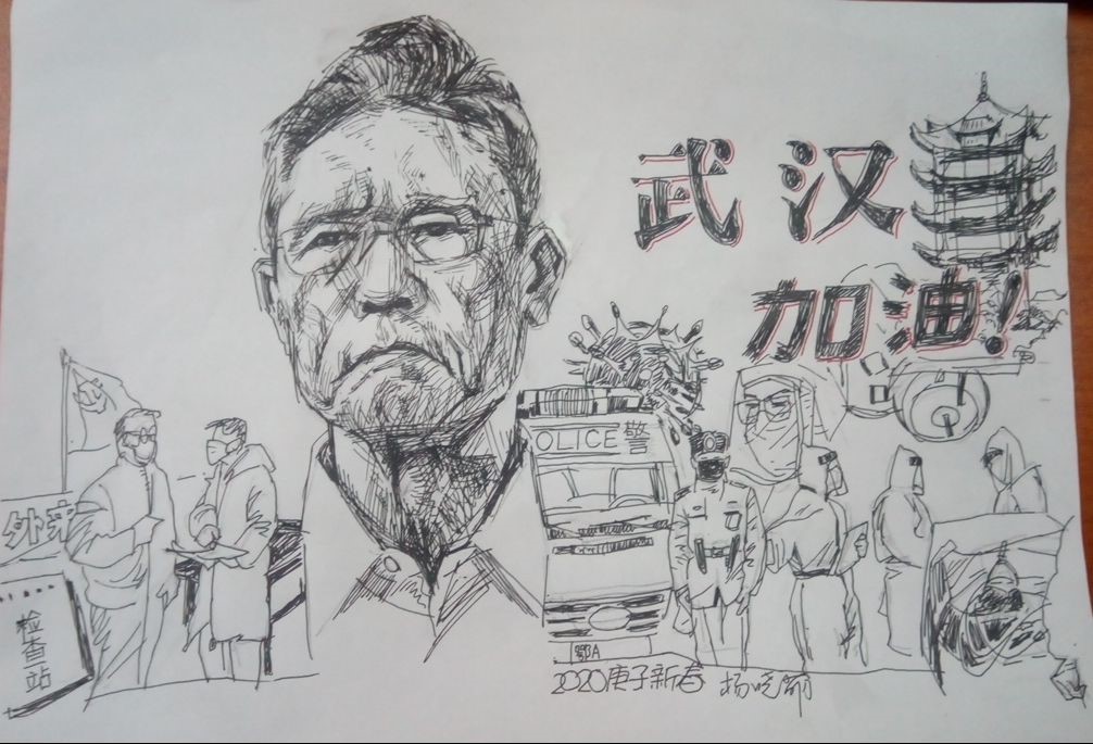 在疫情防控最吃勁的關(guān)鍵階段,全國(guó)上下貫徹落實(shí)習(xí)近平總書記的要求,堅(jiān)定必勝信念,不獲全勝?zèng)Q不輕言成功。辦公室信息支部黨員楊曉萌在做好本職工作的同時(shí),發(fā)揮特長(zhǎng),用自己的滿腔熱情,創(chuàng)作了《戰(zhàn)疫凱歌》快板作品,宣傳防控知識(shí),鼓舞抗“疫”決心,堅(jiān)定勝利信心,素描的《武漢加油》簡(jiǎn)筆畫展現(xiàn)了以鐘南山院士為代表的醫(yī)護(hù)人員戰(zhàn)斗在一線、地方聯(lián)防聯(lián)控和堅(jiān)強(qiáng)不屈的英雄城市武漢,以筆墨為槍盾,用快板為劍戟,劈開云霧,以“藝”戰(zhàn)“疫”!