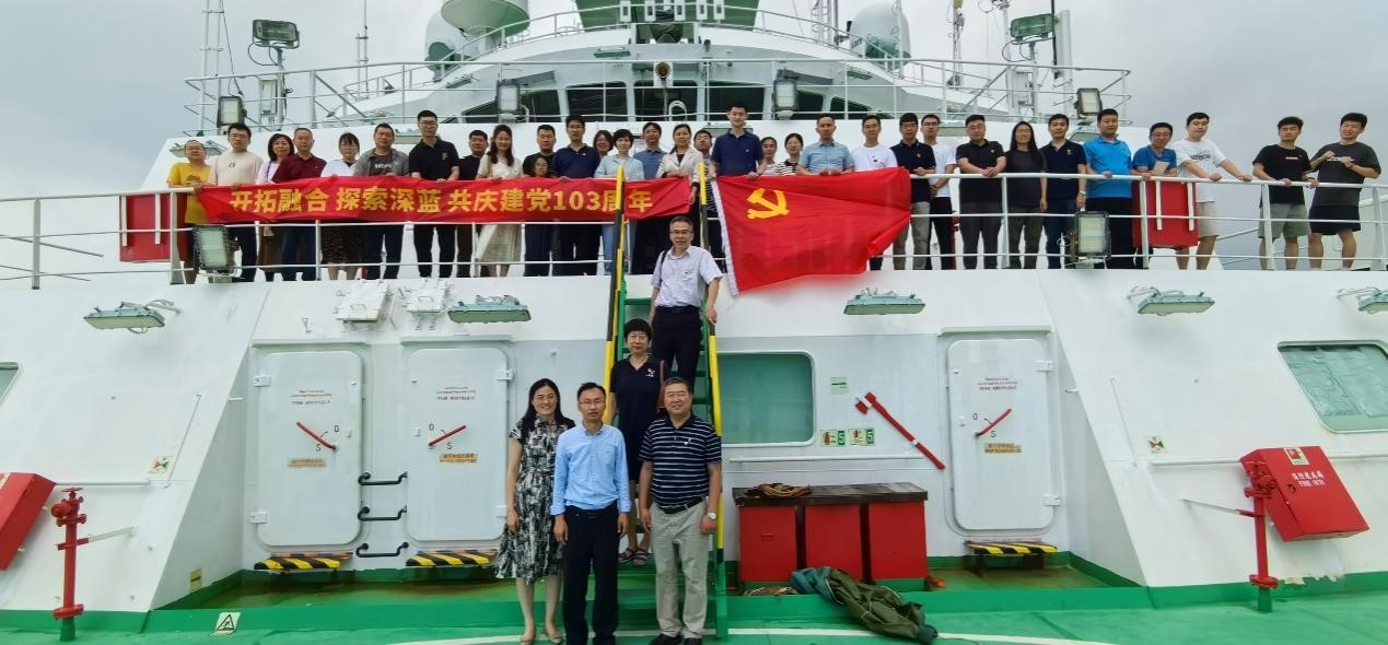 7月2日,中國水產(chǎn)科學(xué)研究院黃海水產(chǎn)研究所病研支部、環(huán)境支部、成果轉(zhuǎn)化支部、船舶支部以及中國地質(zhì)調(diào)查局青島海洋地質(zhì)研究所(以下簡(jiǎn)稱“海地所”)油氣室黨支部和綜合四黨支部聯(lián)合開展“開拓融合 探索深藍(lán) 共慶建黨103周年”主題黨日活動(dòng)。病研支部書記張慶利,船舶支部副書記呂文清,油氣室黨支部副書記張銀國、綜合四黨支部副書記孟祥君等40余名黨員參加活動(dòng)?;顒?dòng)由病研支部書記張慶利同志主持。