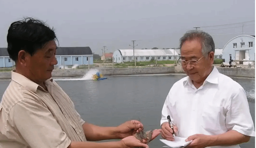趙法箴在對(duì)蝦養(yǎng)殖場(chǎng)調(diào)研